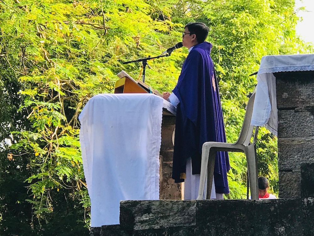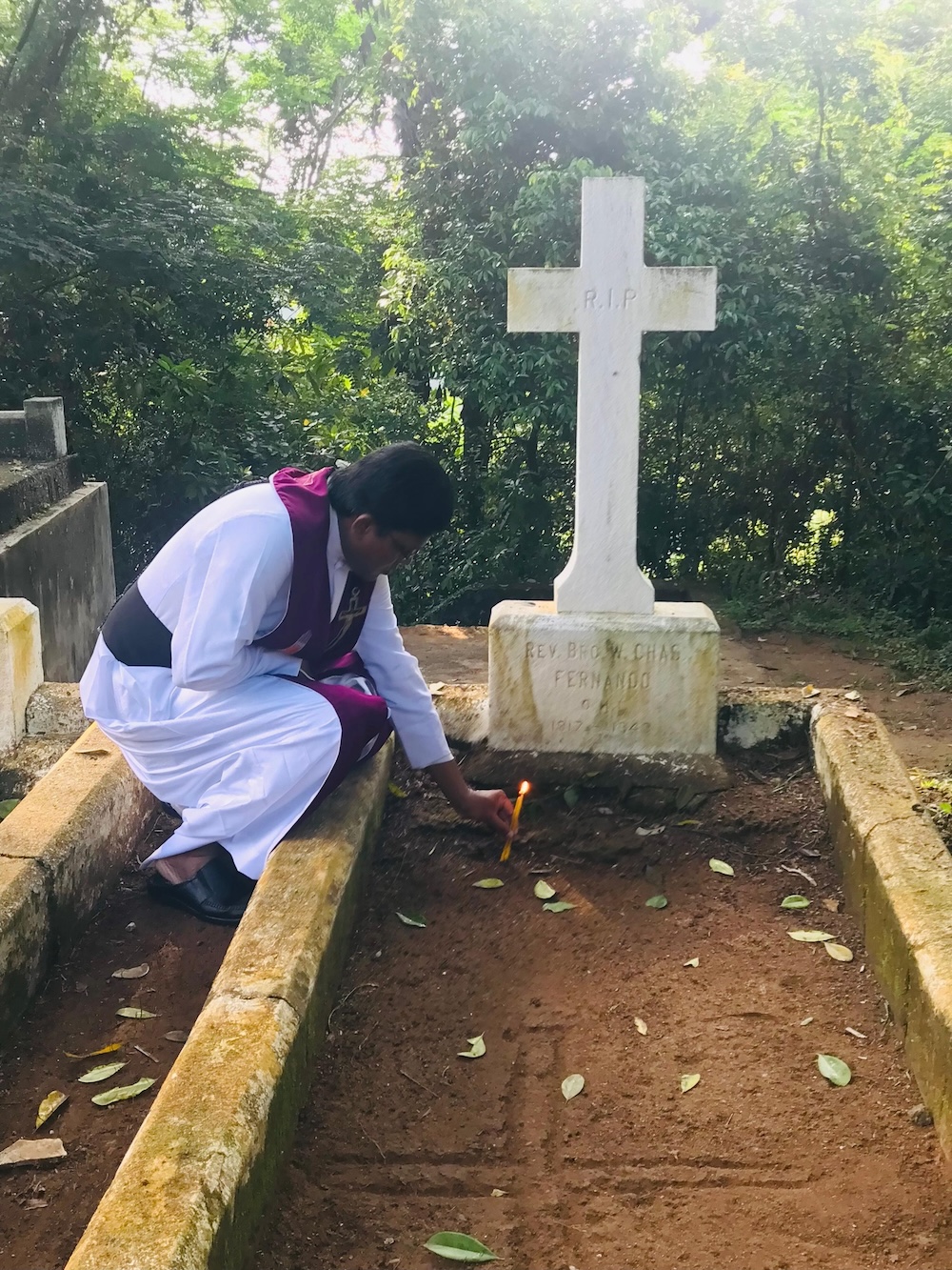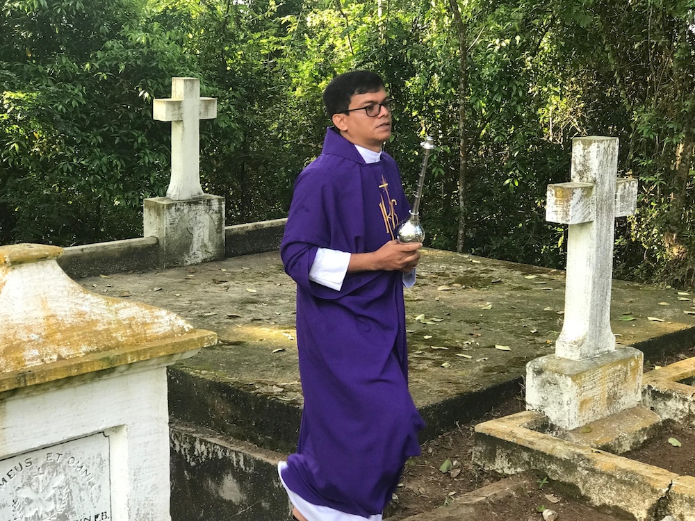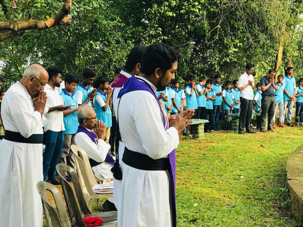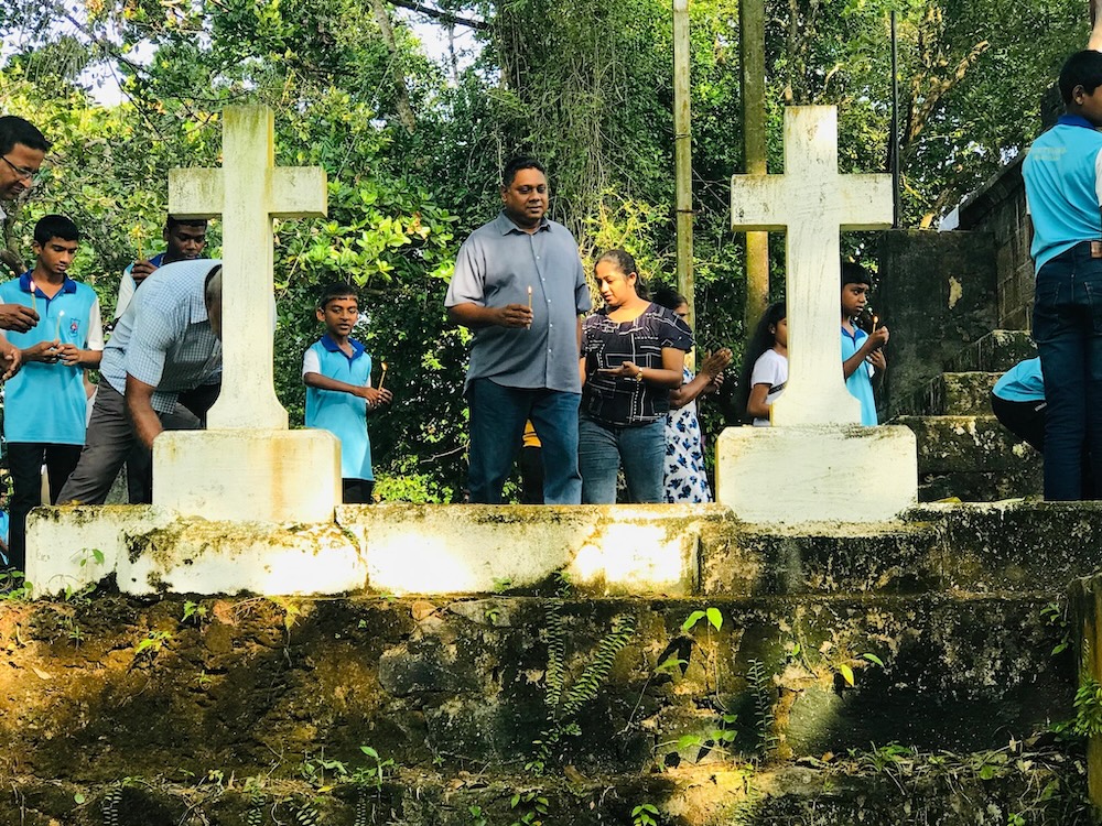 St. Vincent’s Home, Maggona, Sri Lanka – At the foot of the Cross erected at the National Calvary Shrine (within the premises of St. Vincent’s Home), there is a unique cemetery. It is the holy burial ground of many Oblates (most of them being foreign missionaries) and several Brothers of St. Vincent de Paul who had served at this hallowed institute. Today being the All Souls Day, SVH community paid homage to them by celebrating Holy Mass there together with the children, several villagers and relatives of the dead. Fr. Chamika Sudarshana presided over the Eucharist and blessed the cemetery as well.